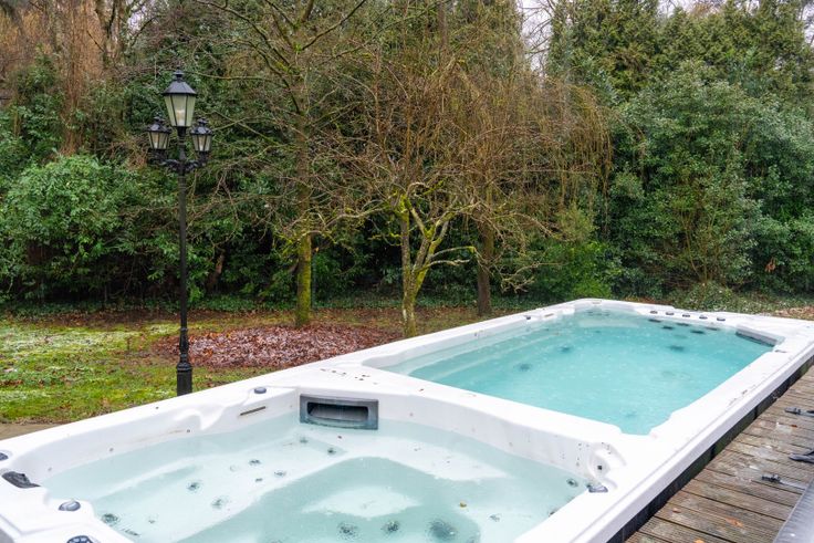 De zuidgerichte tuin met zonneterras zorgt voor rust en privacy, ideaal om te genieten van het omliggende groen. Ontspan in de jacuzzi of neem een verfrissende duik in het zwembad langs het terras.