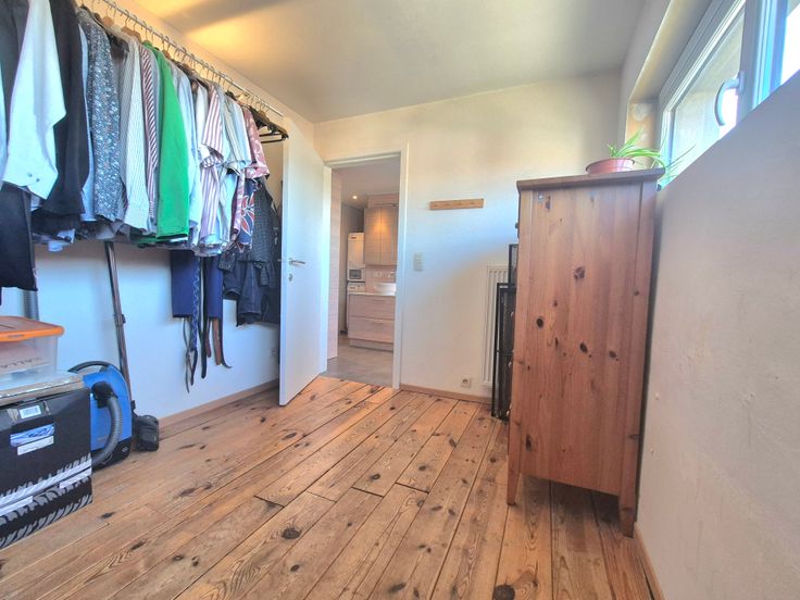 Op het gelijkvloers kom je binnen in de inkomhal met ingebouwde kasten. De sfeervolle woonkamer en de geïnstalleerde keuken vormen het hart van de woning. De keuken is volledig functioneel, maar biedt mogelijkheden voor vernieuwing. Daarnaast is er een bureauruimte, twee handige bergruimtes en een gastentoilet.