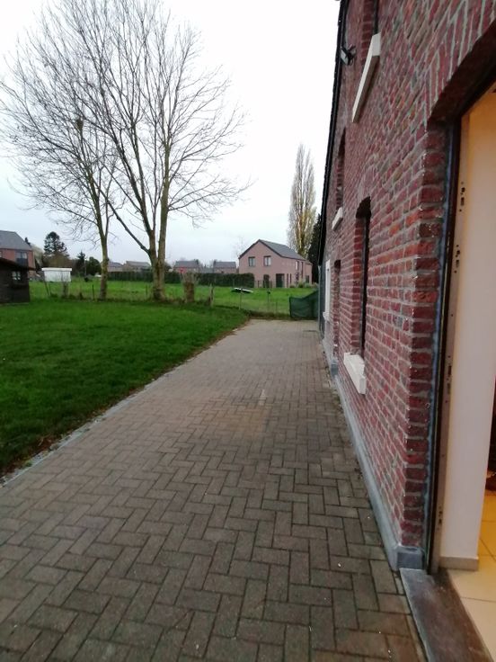 Petite maison 4 façades, agréable, très lumineuse, à la campagne mais à 7 min de Huy, avec un grand jardin et une terrasse bien orientés.