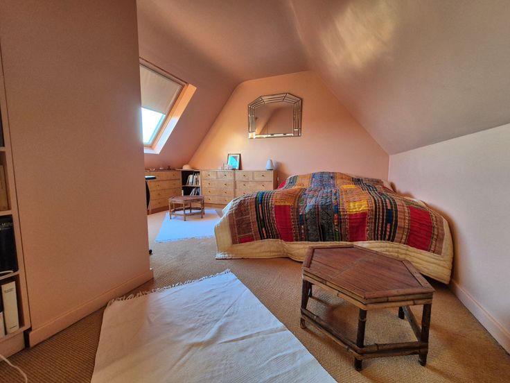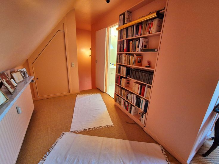 Deze flat met twee slaapkamers, die veel karakter heeft, is aangepast om een slaapkamer te verwijderen en de woonkamer over te laten steken. Deze tweede slaapkamer kan, indien nodig, worden teruggeplaatst met zeer kleine werken.