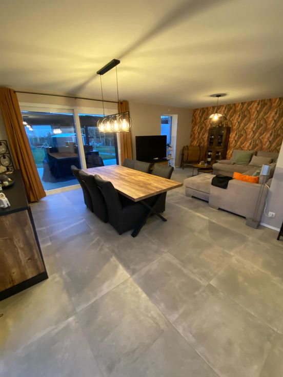 Située dans le charmant village de Haneffe, cette nouvelle construction basse énergie (PEB A+) se distingue par son niveau de finitions soignées et son équipement de qualité (chauffage par le sol, cuisine full équipée disposant d'un grand ilot avec coin snack pour 4 personnes, ventilation double flux, borne de recharge pour voiture électrique, adoucisseur d'eau, alarme, ect.). La maison est composée au rez de chaussée : hall, WC, buanderie, séjour ouvert de 50 m2 donnant sur la terrasse (40 m2) et le jardin. A l'étage : hall, 3 chambres (14/14/14 m2), salle de douche (grande douche italienne) avec WC, débarras.