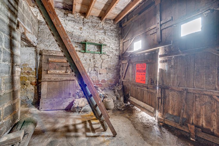 Linkerzijde: 100m² schuur op twee niveaus.