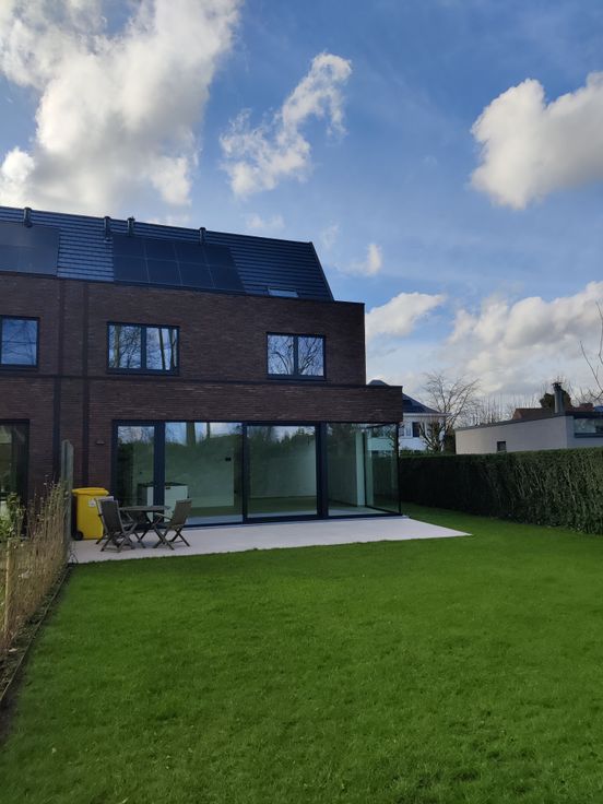 Deze moderne, halfopen nieuwbouwwoning (eerste bewoning!) biedt een energiezuinige woonervaring (BEN) en is afgewerkt met kwaliteitsvolle materialen. De woning wordt verwarmd en gekoeld (vloerverwarming) met een geothermische warmtepomp en zonnepanelen.