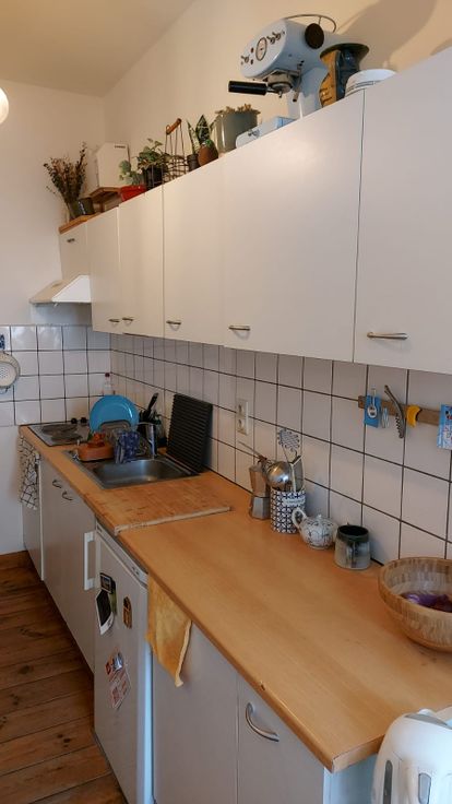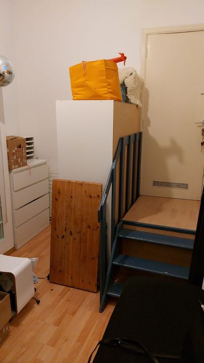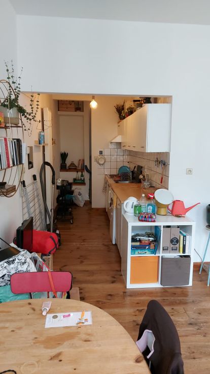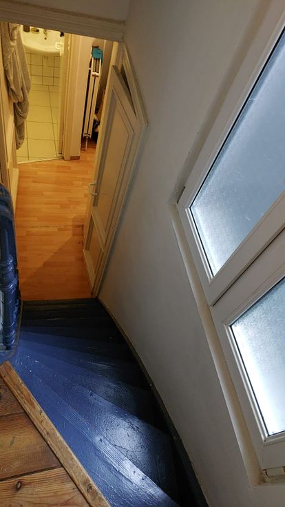 Indeling: Hal met badkamer en aparte wc, trapje op: open keuken met kookvuur en dampkap met aansluitend living en 1 slaapkamer.