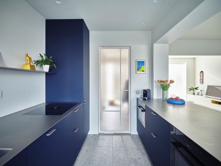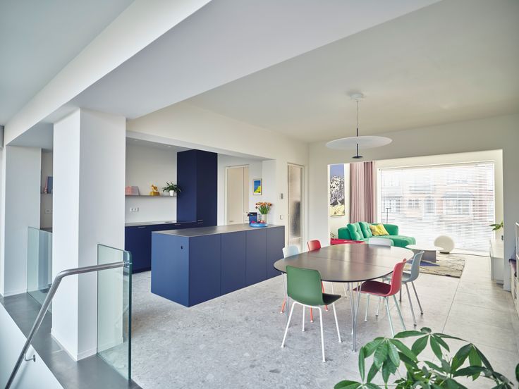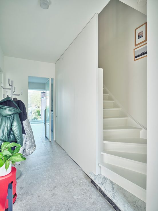-Op het gelijkvloers vind je een hal met toilet, met daarachter de ruime zit- en eetruimte met open keuken. De keuken is volledig vernieuwd in 2023, met toestellen van Miele en Bora. De hoge ramen achteraan verzekeren de connectie met de tuin.