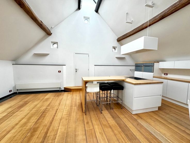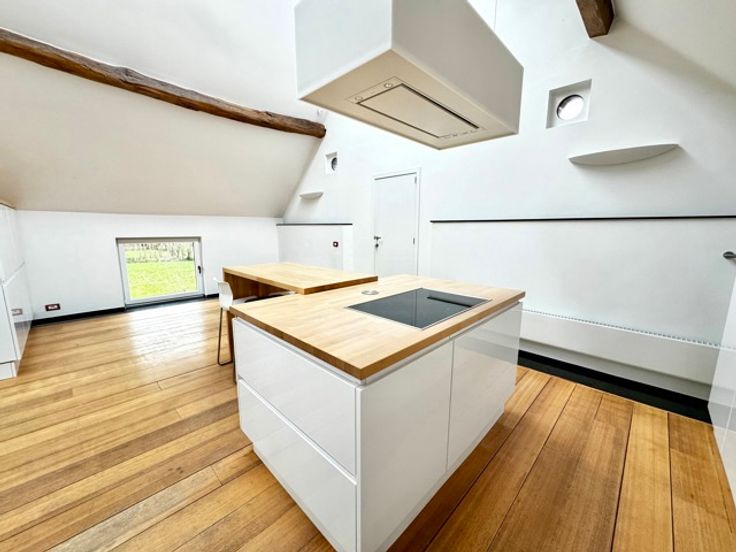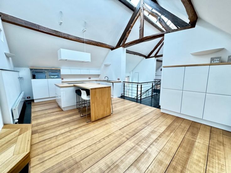 1e verdieping: 45m² open ruimte ideaal voor het creëren van een open ruimte en 32m² volledig uitgeruste keuken.