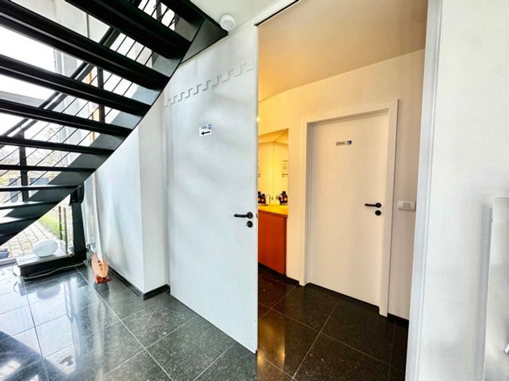 Het pand bestaat uit het volgende op de begane grond: ruime wachtruimte van 30m², hal met toilet, kantoor van 13m² (bezet op maandag) en groot kantoor van 22m² met badkamer.