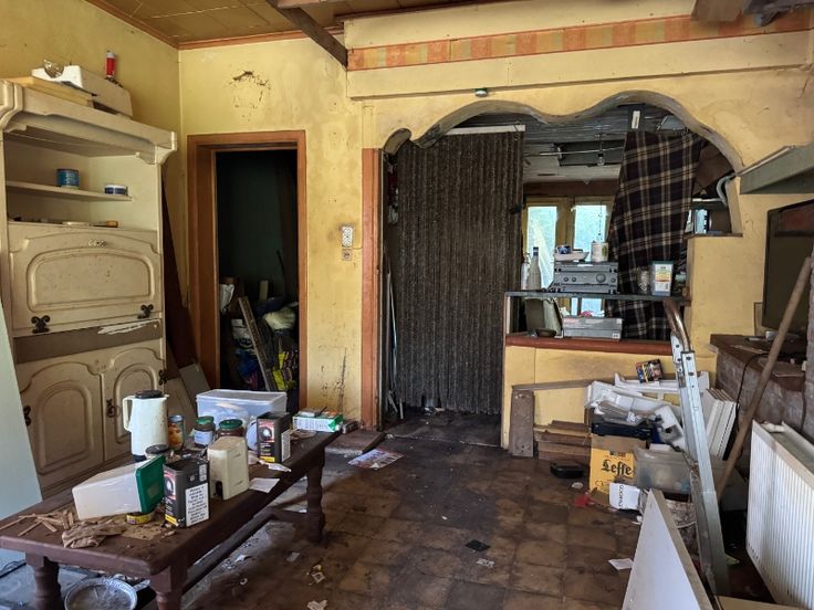 Inkom, leefruimte, keuken, badkamer, verscheidene kotjes en bergingen, overwoekerde koer en dito tuinhuisje, op de verdieping 1 slaapkamer, achter gelijkvloers kan er nog een slaapkamer worden gemaakt.Alle nutsvoorzieningen aanwezig: Gas, Elektriciteit en stadswater.