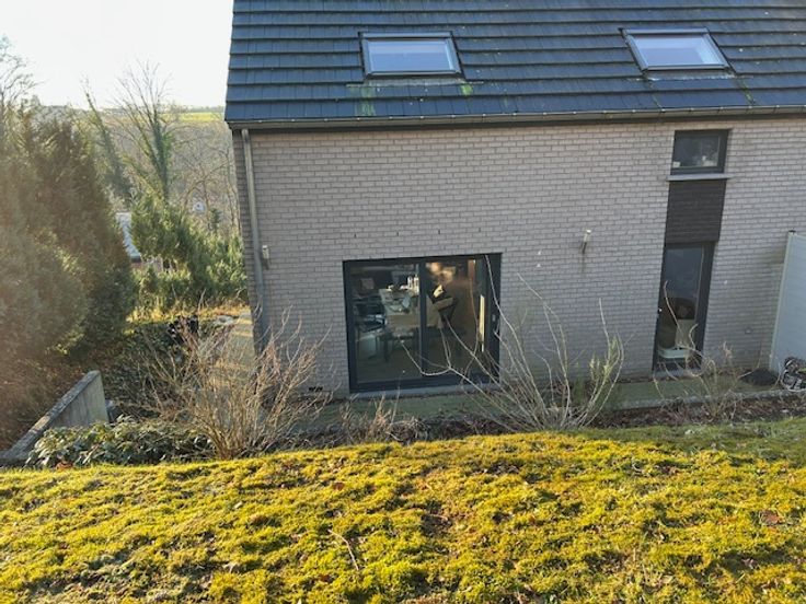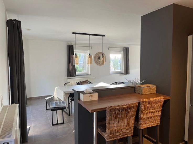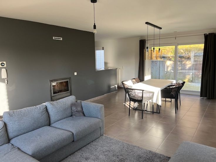 - 1er étage : cuisine, salon, salle à manger avec insert au bois et toilette. Terrasse et jardin accessible directement à l'arrière par la cuisine et le salon