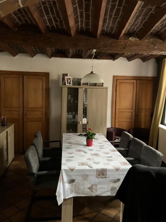 Maison d'habitation avec dépendances comprenant, au rez-de-chaussée: vaste séjour en façade avant, couloir desservant un bureau et une cuisine semi-équipée en façade arrière, salle à manger avec second accès depuis la voirie, salle de bain (lavabo, baignoire et wc) A l'étage, on trouve un palier et 3 chambres mansardées Remises et garage étroit permettant un accès à l'arrière de la maison depuis la rue. Cour et jardin Cave Simple vitrage Electricité et isolation à revoir Chauffage centrat mazout Bien actuellement loué, depuis de très nombreuses années