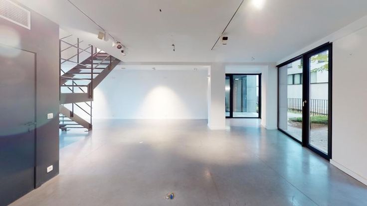 Indeling: De beneden verdieping bestaat uit één grote ruimte met vooraan een dubbele plafondhoogte. Verder vindt men hier nog de sanitaire ruimte met twee toiletten met handenwasser en een technische ruimte met kitchenette. Via een open trap bereikt men de tweede verdieping die zowel voor winkelruimte als voor kantoor kan aangewend worden.