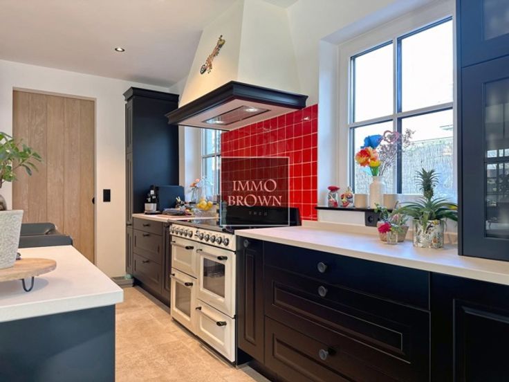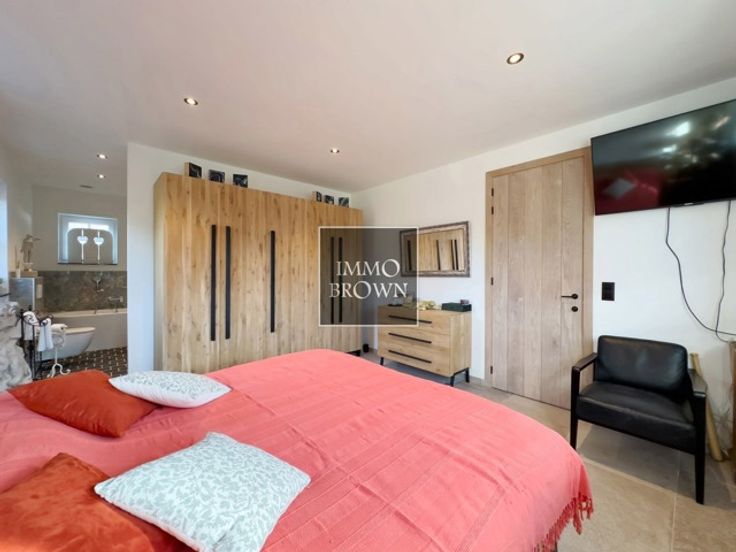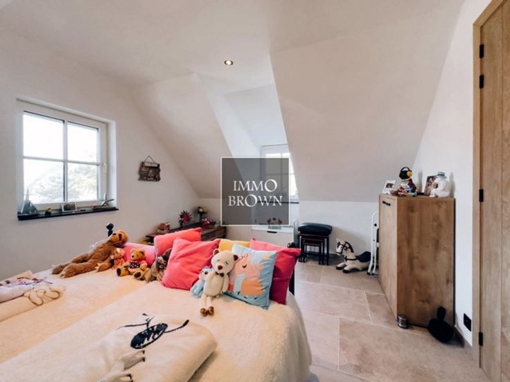 Moderne BEN-villa met hoogwaardige afwerking Deze energiezuinige BEN-villa, gebouwd in 2023 op een perceel van 900 m², biedt rust en privacy in een groene omgeving. De architectuur combineert moderne elegantie met tijdloze charme. Indeling van de villa Gelijkvloers – Ruime inkomhal met gastentoilet geeft toegang tot een eerste slaapkamer met en-suite badkamer (ligbad, dubbele wastafel, toilet). Open keuken met hoogwaardige SMEG-toestellen, wasruimte en berging. Lichtrijke woonkamer met toegang tot de tuin. Eerste verdieping – Drie ruime slaapkamers, waarvan één momenteel als dressing wordt gebruikt. Volledig uitgeruste badkamer met ligbad, douche, wastafel en toilet. Buitenruimte – Zuidgerichte tuin met overdekt eiken terras, naadloos geïntegreerd in de leefruimte. Vrijstaande garage met plaats voor een grote wagen, ook bruikbaar als werkruimte of opslag. Aparte bijgebouw met woonkamer, keuken, slaapkamer en douchekamer, ideaal als gastenverblijf of werkruimte. Energie-efficiëntie – Gebouwd volgens BEN-normen met hoogwaardige isolatie, energiezuinige installaties en slimme technologie voor een minimale energiekost en maximaal comfort. Uitstekende locatie – Gelegen in een rustige en groene omgeving. Deze villa combineert luxe, ruimte en duurzaamheid. Contacteer ons voor meer informatie of een bezichtiging.