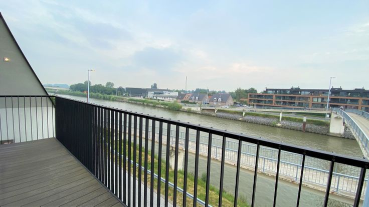 De penthouse omvat een inkomhal, voorzien van ingebouwde kasten, ruime woonkamer eveneens met inbouwkasten, gezellige gashaard en grote raampartijen, die zorgen voor een prachtig zicht over de Leie vanuit het appartement. De woonkamer loopt naadloos over in de open, hyper-geïnstalleerde keuken. Zowel aan de keuken als aan de woonkamer is een terras voorzien met prachtig zicht op de Leie.