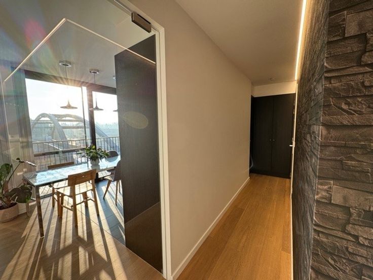 Verder beschikt de penthouse over een afzonderlijk toilet, wasplaats/berging, badkamer met zowel ligbad als douche en 2 slaapkamers, deze liggen achteraan. De volledige penthouse is voorzien van lichtarmaturen en op maat gemaakte verduistering aan de ramen. Als extra is er een ondergrondse privatieve berging.