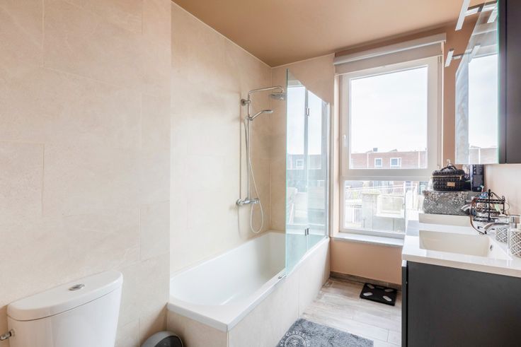 Het appartement beschikt over drie slaapkamers, een moderne badkamer met ligbad, douchescherm en dubbele lavabo, een apart gastentoilet en een handige wasplaats.