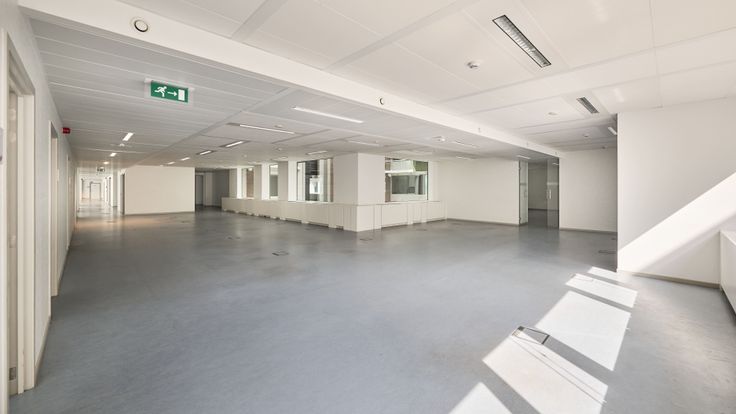 Deze lichtrijke kantoren bevinden zich deels (1.811 m²) op de eerste verdieping en deels (2.336 m²) op de tweede verdieping, allebei rondom twee atriums en hebben voldoende privatief sanitair en diverse liften.