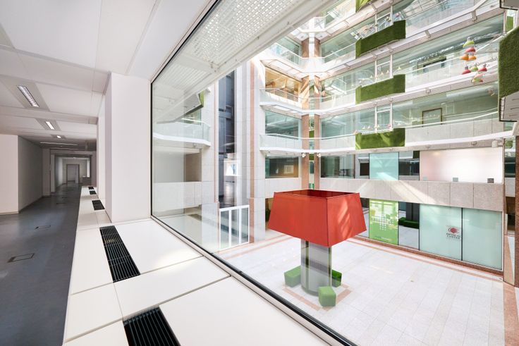 Deze lichtrijke kantoren bevinden zich op de eerste verdieping rondom twee atriums en hebben voldoende privatief sanitair en diverse liften.