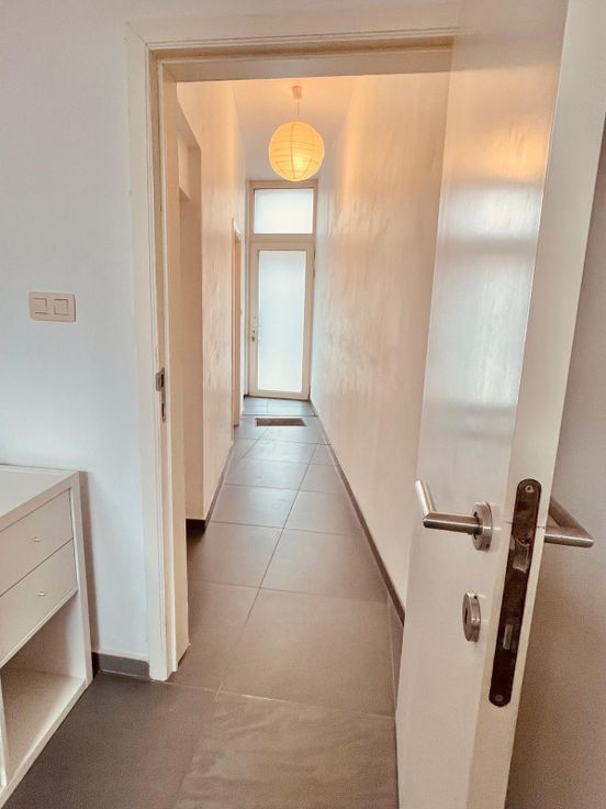 Achter een discrete gevel verschijnt een ruim appartement ( kan met meubels verhuurd worden) met 2 slaapkamers, waarvan 1 met dressing. Ruime badkamer.