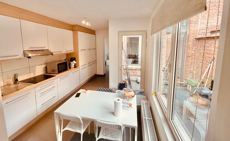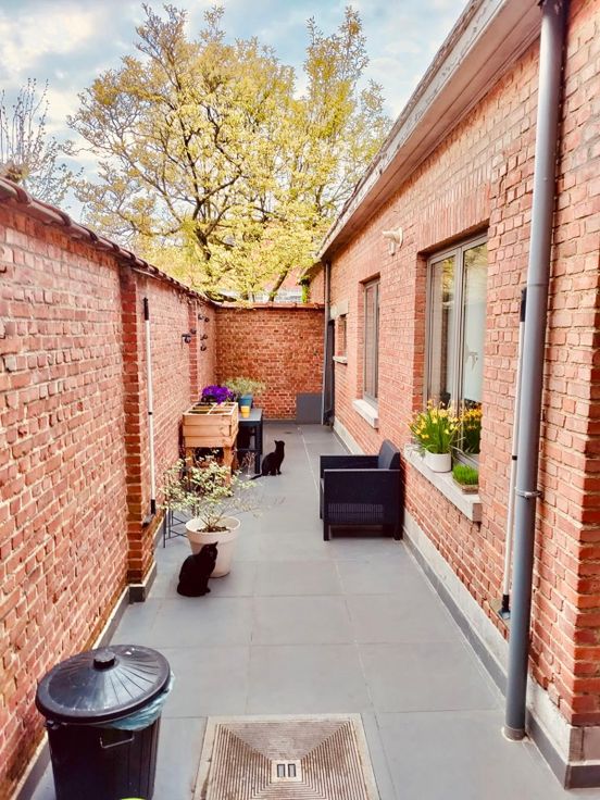 Je zit op het gelijkvloers, dus makkelijk met fietsen en spullen en toch in de diepte, dus geen straatlawaai. Een ruime koer waarachter het groen en de bloemen van een magnolia en een lindeboom. Er is slechts 1 ander appartement in het gebouw en je hebt je eigen ingang. Dus het geeft het gevoel van een huisje ipv een appartement.