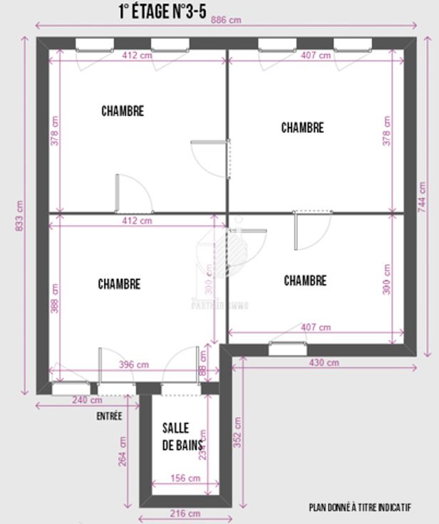 1e verdieping: 4 slaapkamers, badkamer.