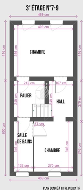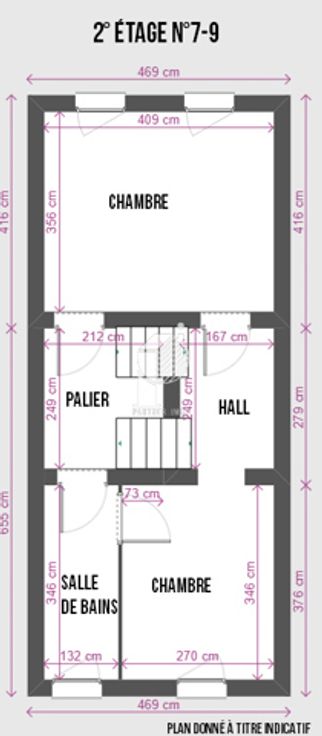 2e verdieping: Inkomhal, badkamer, keuken, woonkamer en eetkamer.