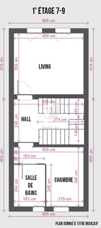 2e verdieping: Leefruimte, keuken, 1 slaapkamer, badkamer.