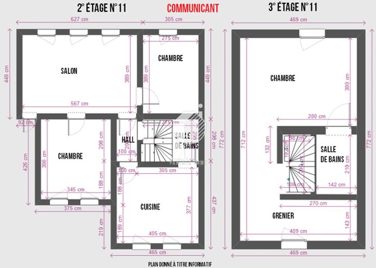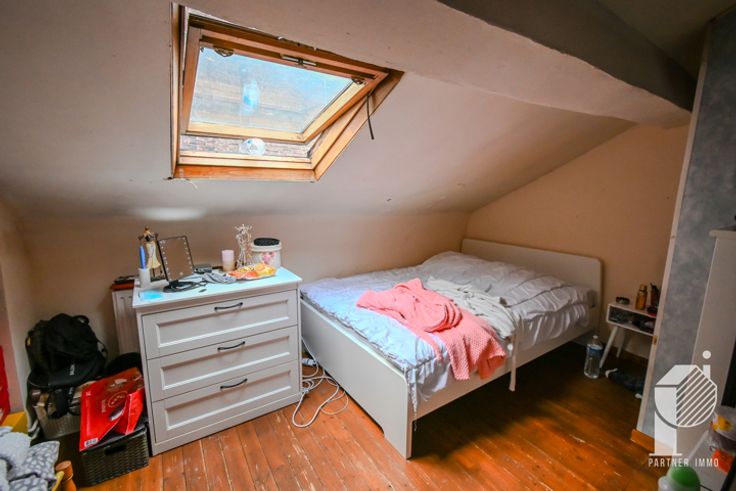 2e verdieping: Leefruimte, keuken, badkamer, 2 slaapkamers + 3e verdieping met 1 slaapkamer en sanitair.