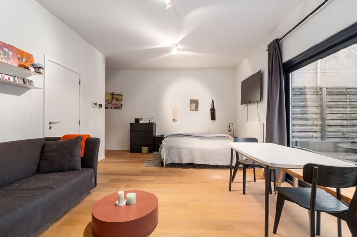 Compacte studio (59m2) met keuken, badkamer, ingebouwde kasten, aparte bergruimte en een ruim terras te koop. Toplocatie naast Kinepolis Gent. Ideaal voor een student of als investering. Mogelijkheid tot aankoop van ondergrondse garageplaats voor €40.000.