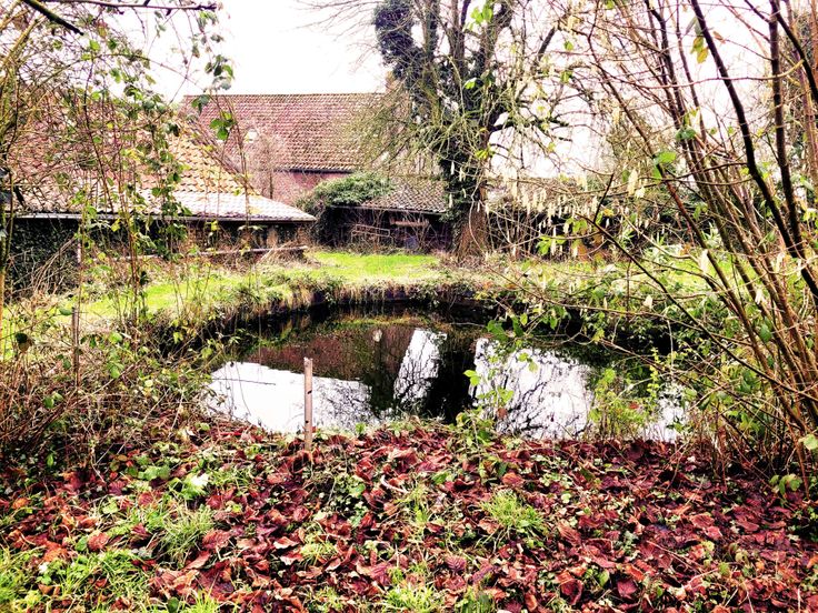 In de tuin is een grote vijver, met daarrond veel fruitbomen.