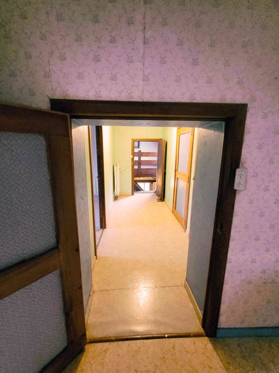 - 1e verdieping: grote ruimte boven living, eventueel als 4e kamer of hobbyruimte, gang met 3 kamers en toilet