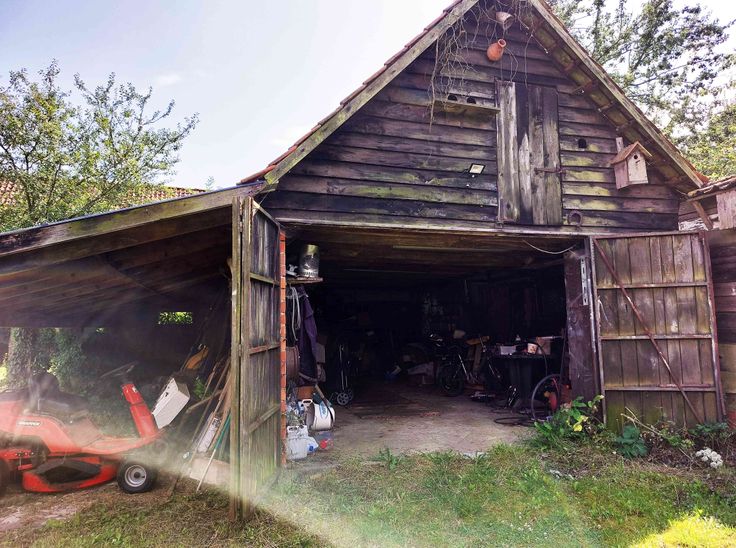 Er is een grote garage (met werkput) en carport, en in de tuin staan een tuinhuis en een schuur.