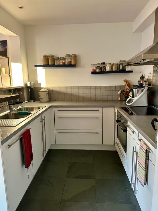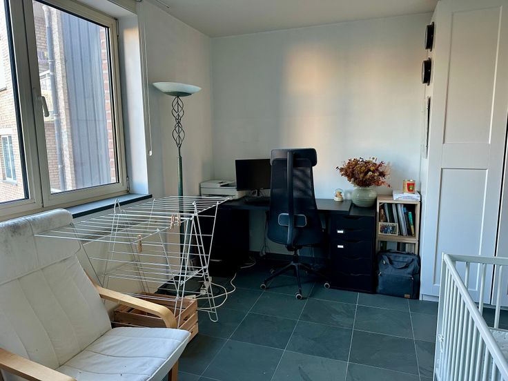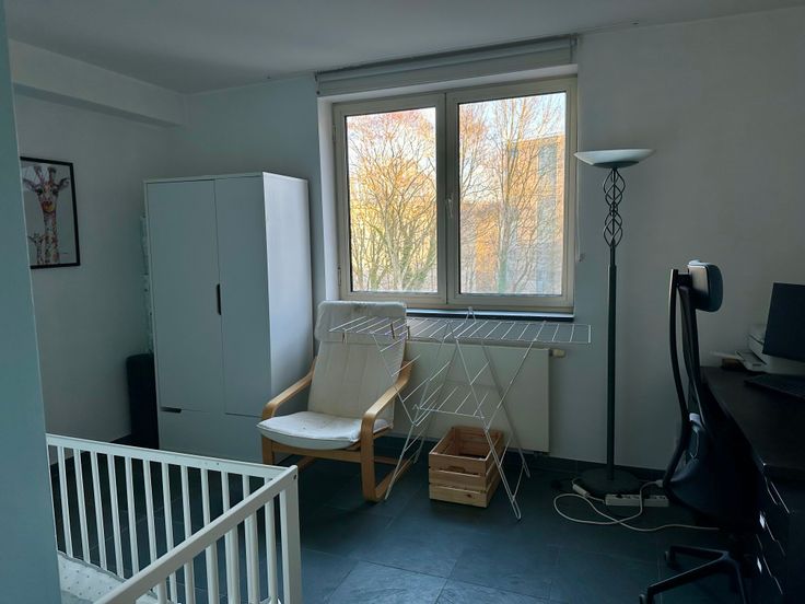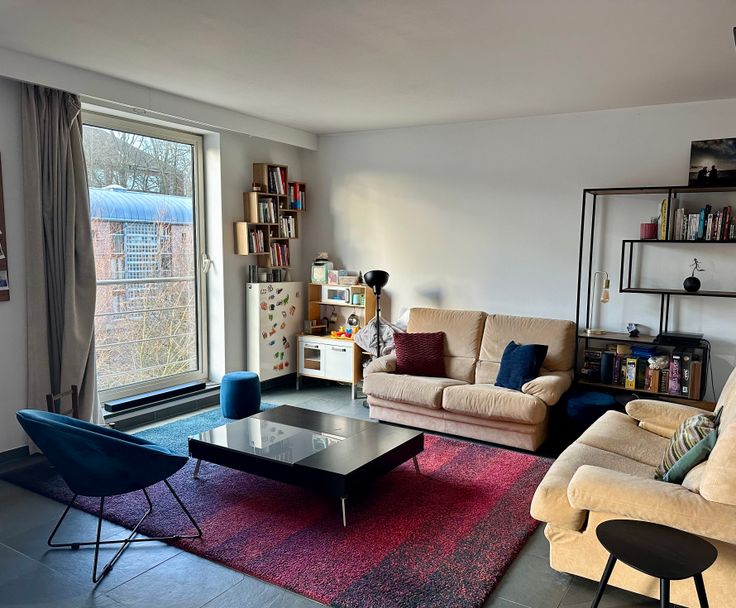 Dans un petit immeuble situé le long de la promenade verte, proximité immédiate du tram 8 et de Hermann Debroux, appartement entièrement meublé de 100m² au 3e étage avec ascenseur, composé de 2 chambres (14-16m²), 2 salles d’eau dont une avec bain, cuisine super équipée, terrasse orientée sud-ouest (6m²), parking intérieur et cave, porte blindée, vidéophone. PEB C+. Chaudière individuelle récente. Agences s'abstenir.
