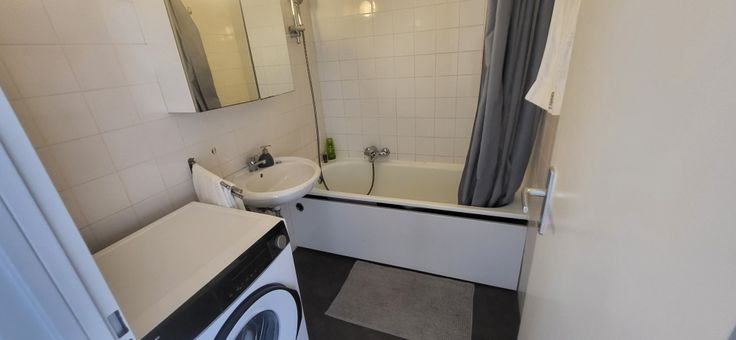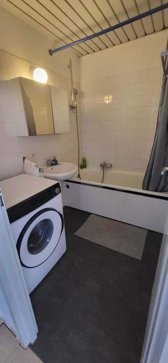 - Salle de bain, avec baignoire et lave-linge