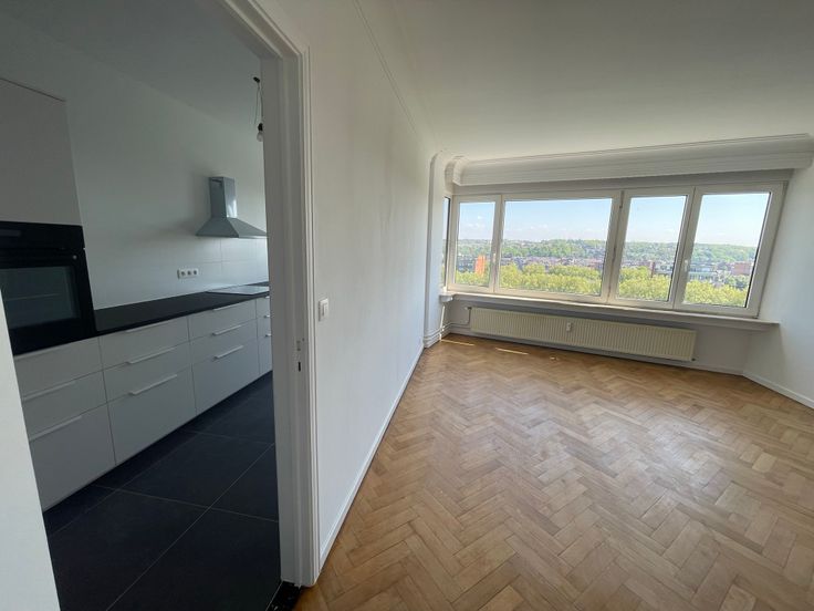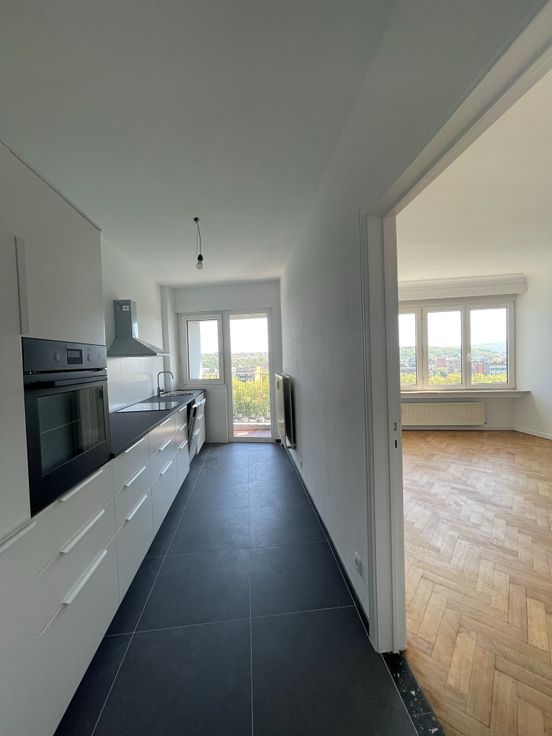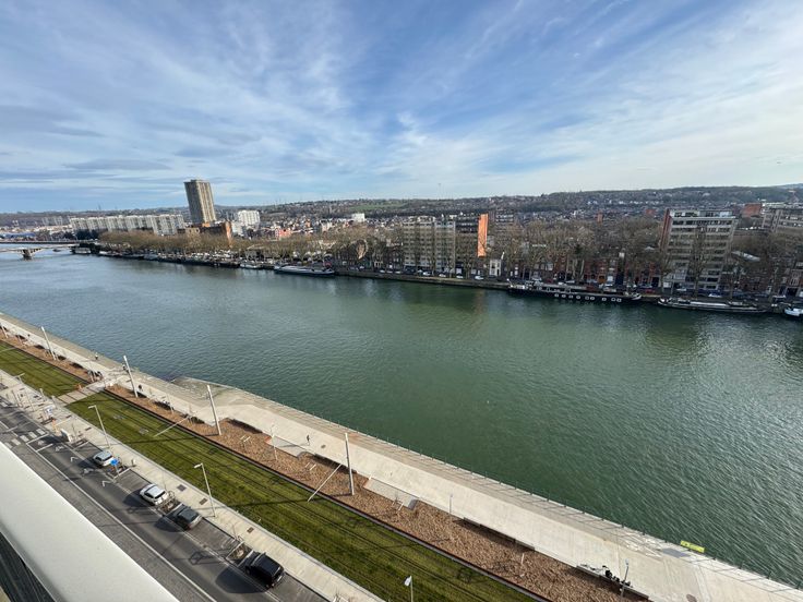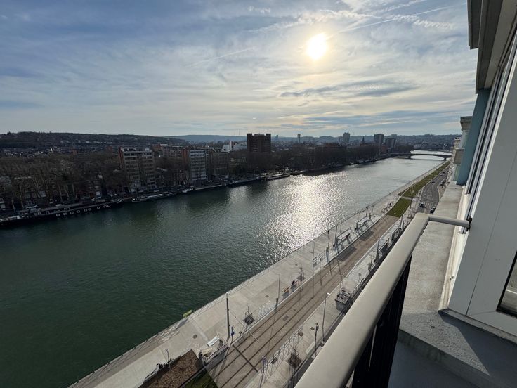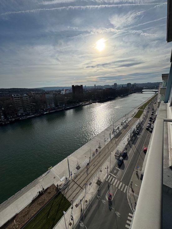 A proximité du centre ville et des commodités, bel appartement sur le nouveau quai saint léonard, 2 chambres au 12 étage vue sur Meuse, entièrement rénové avec terrasse.
