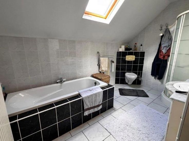 Deze gezellige woning vlakbij het centrum van Temse beschikt over een inkomhal, een gastentoilet, een ruime en lichtrijke woonkamer met een open ingerichte keuken (gaskookvuur, dampkap, oven, frigo, vaatwasmachine), 2 slaapkamers (1 slaapkamer op de 1e verdieping en 1 zolderkamer), een badkamer met lavabo, ligbad, douche en toilet en een gezellig terras met tuinberging.