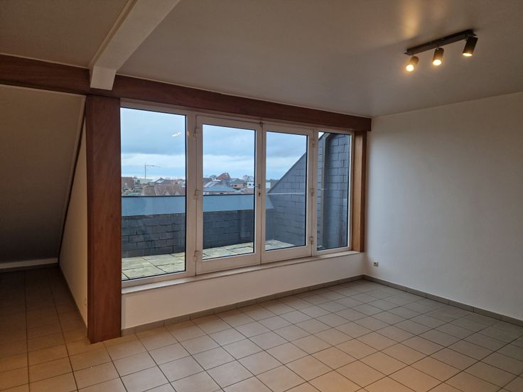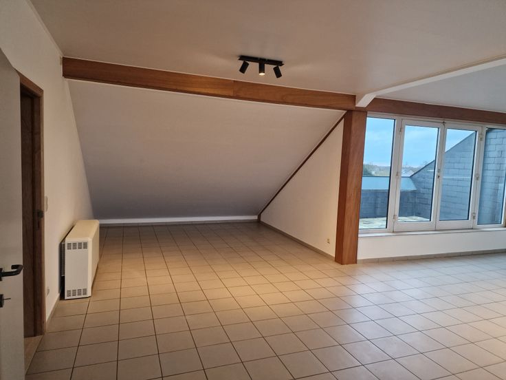 Gemeenschappelijke inkomhal begeeft zich op het gelijkvloers die toegang geeft tot zeer lichtrijke livingruimte met eetplaats (57m²). 2de verdiep: Aan de achterzijde van het gebouw treft men één noordwest gerichte slaapkamer (15,75m²) met Tevens is er ook de nachthal tussen de slaapkamer en Één grote slaapkamer (16,27 m²) met grote ramen, gelegen aan de rustige achterzijde van het gebouw. Badkamer met bad/douche (8,88m²) met aansluiting voor wasmachine, badkamer met bad en douche in het bad. En aparte douchekamer en aparte WC met wasbakje. Ruime lumineuze leefruimte met eetplaats. Uitgeruste keuken met koelkast en elektrische kookplaat met 4 kookpits en ingebouwde koelkast.