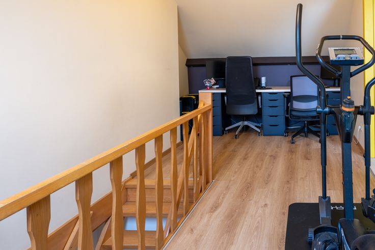 2e verdieping: bureauruimte met ingemaakte kasten, voorzieningen voor wasmachine & droogkast, slpk met rolluik en ingemaakte kasten.