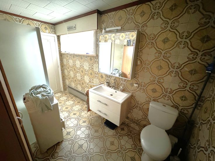 – badkamer met douche, badkamermeubel + toilet