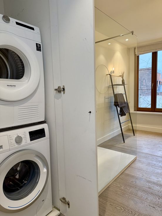 - Verborgen inbouwkast met aansluitingen voor wasmachine en droger