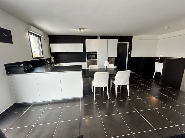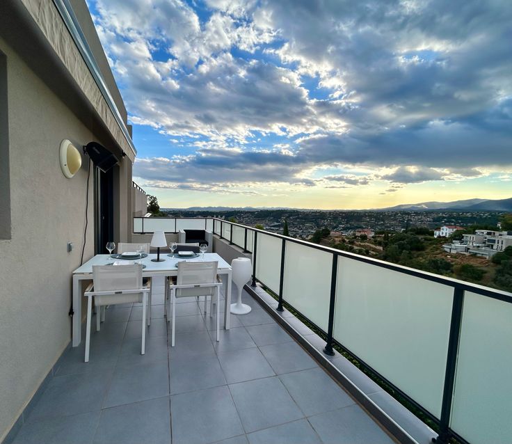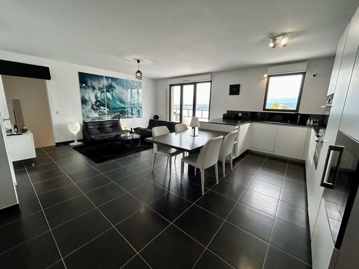 Living met open luxueuze keuken (graniet, ijsblokjesmachine, wijnfrigo, Siemens apparaten…). Naast de living bevindt zich een terras van 24m2 met prachtig panoramisch zicht op de bergen.