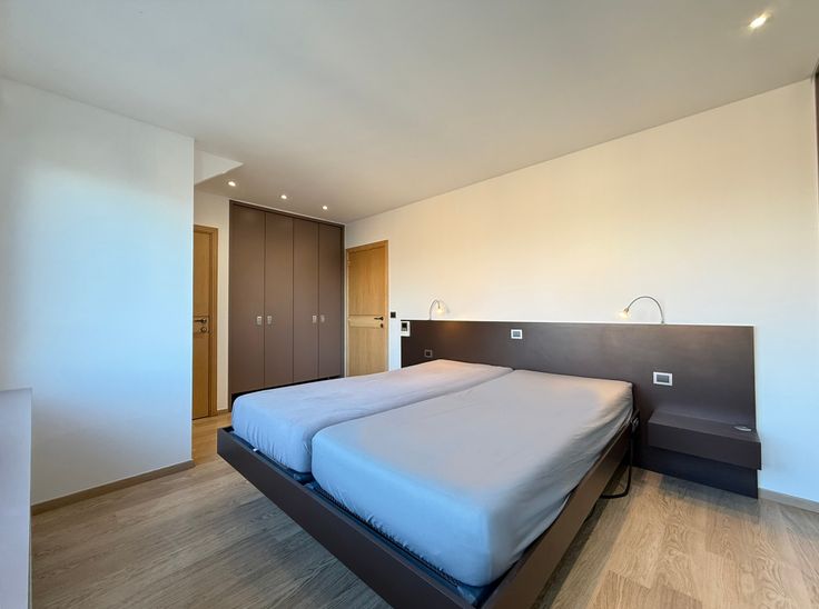 Drie slaapkamers, waarvan twee kinderkamers met een gedeelde waskamer voorzien van ingebouwde kasten en lavabo’s.