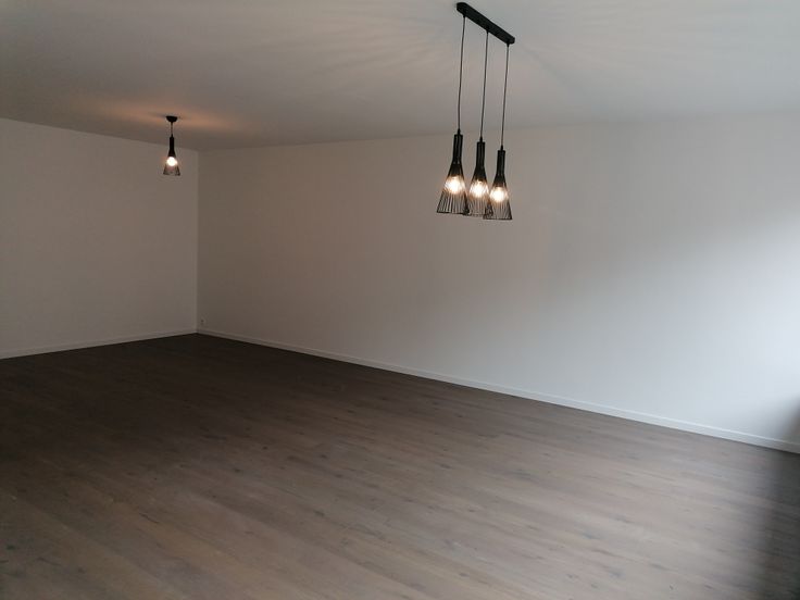 In de lichtrijke woonkamer ligt een parketvloer waardoor het moderne een warme en comfortabele touch krijgt.