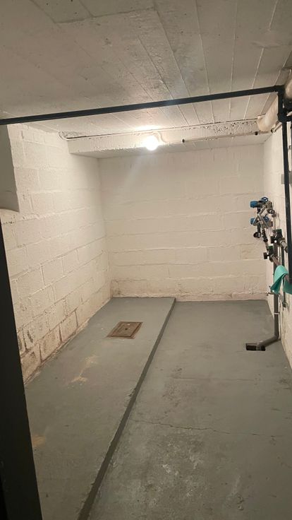 Garage voor wagen en grote kelder waar wasmachine en droogkast kan staan.