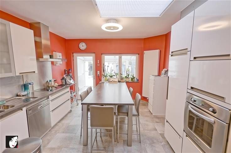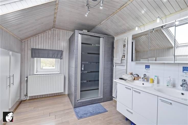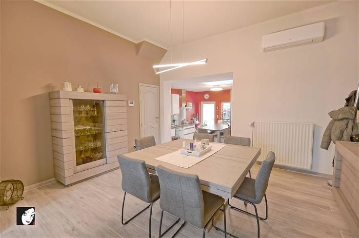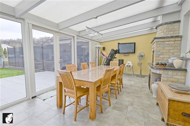 Sorry er is geen nederlandse vertaling beschikbaar. Vous êtes indépendant, vous avez besoin de place pour stocker du matériel et travailler et vous souhaitez combiner tout cela avec votre petit nid douillet, spacieux, en parfait état et situé à proximité de toutes les commodités ? Si c’est le cas, nous pensons avoir trouvé le bien idéal pour vous ! En effet, voici une maison unifamiliale offrant un très beau volume avec grand garage pour minium 3 véhicules (qui servait auparavant d’atelier), vaste parking à l’avant de l’habitation, agréable terrasse carrelée et petit jardin facile d’entretien avec pergolas + abri de jardin. De +, proche de toutes les commodités, possibilité donc de se passer aisément d’un véhicule. Composition : hall d’entrée, agréable séjour, cuisine équipée + coin repas, agréable véranda, une 1ère salle d’eau et une buanderie. A l’étage : hall de nuit, dressing, 3 belles chambres indépendantes, bureau et salle-de-bains équipée. Au 2ème : 2 chambres supplémentaires ou espace parental, bibliothèque, salle de sport… Les possibilités sont multiples. Egalement de bonnes caves au sous-sol. Infos utiles : excellente toiture en tuiles (2011) avec isolation, pignon et façade arrière protégés par un bardage en éternit, jolie façade, châssis DV bois ou PVC, porte de garage sectionnelle motorisée, cheminées fonctionnelles, CCM + possibilité de gaz de ville, 2 pompes-à-chaleur réversibles, parquet ou carrelage, alarme, panneaux photovoltaïques. Que demander de pl