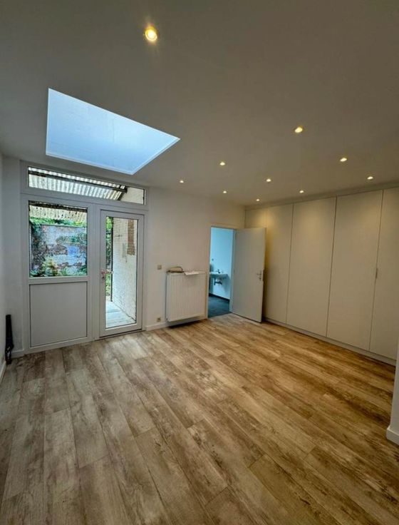 Winkelpand met kleine woonst keuken, badkamer met toilet, 1 slaapkamer en tuin