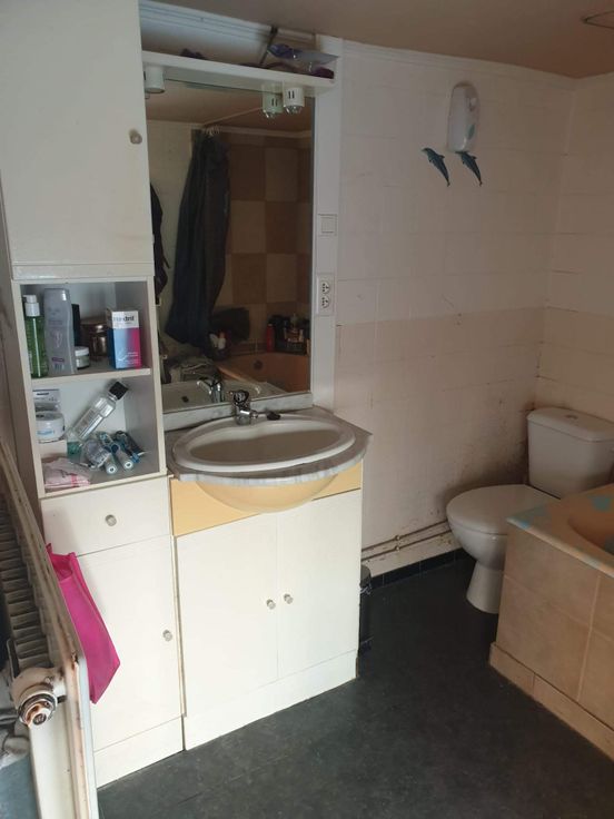 Via de gemeenschappelijke inkom en trap, komen we terecht in het appartement met een open keuken, ruime eetkamer en zithoek, badkamer met bad en toilet en één slaapkamer.