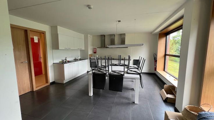 Elke vleugel in het gebouw beschikt over een ruimte keuken per 10 kamers. Deze is ingericht met alle nodige toestellen en wordt samen met de lotgenoten beheerd.
