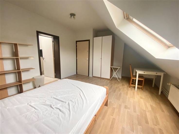 Two min. walk from Parvis de St.Gilles, facing a small parc, top floor (4th) two bedroomed very quiet apartment, fully furnished and equipped. Parquet floor all over, comfortable kitchen, living room, bathroom with toilet, common laundry. Rent : 1390 € + 240 € common and individual charges)