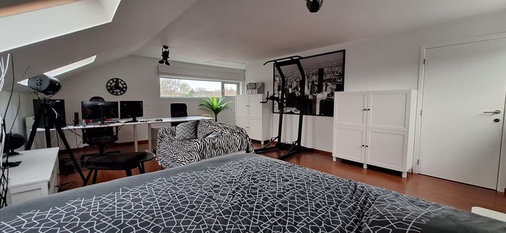 - grote zolder ingericht met slaapkamer/bureau/dressing