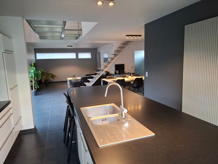 - open design trap in leefruimte & passerelle 1ste verdiep